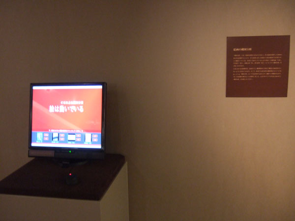 宝の山のような企業資料館にこもって、少し滅入りそうになりながら収集した資料は、落ち着いたデザインで上品に展示されている。この展覧会の見所はもちろん椿会の方々の作品ですが、2階にモニターで設置されている絵画の構図分析「絵は動いている」も是非みていただきたい。あと、88年の歴史を刻んだ資生堂ギャラリーの年譜や写真のキャプションに出てくる人名もチェックしていただきたい。資生堂の展覧会にどんな方がいらしていたのか、交友関係などもわかり、きっと面白いのではないかと思います。