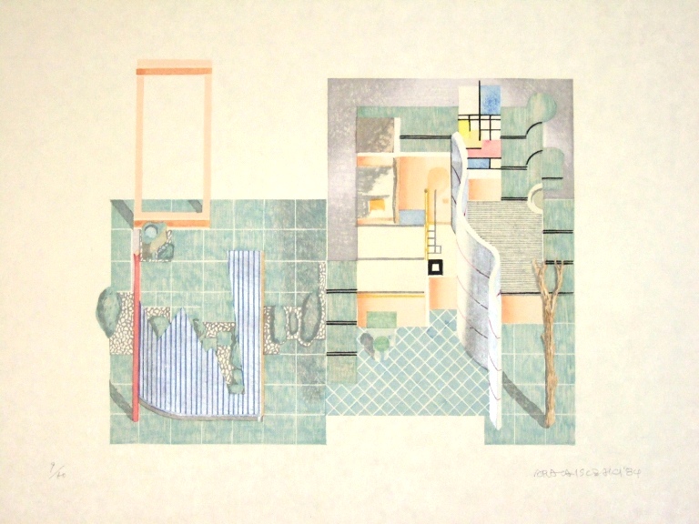 私たちが版元として(現代版画センター、ときの忘れもの)直接エディションしたものだけでも二百数十点を数えますが、その他に海外のエディションや、磯崎新先生が展覧会やコンペに出品するために制作された版画作品(たとえば、師の丹下健三に敗れた東京都庁舎のコンペ出品作品はシルクスクリーンによる作品でした)などを加えると、おそらく四百点近い数になるはずです。