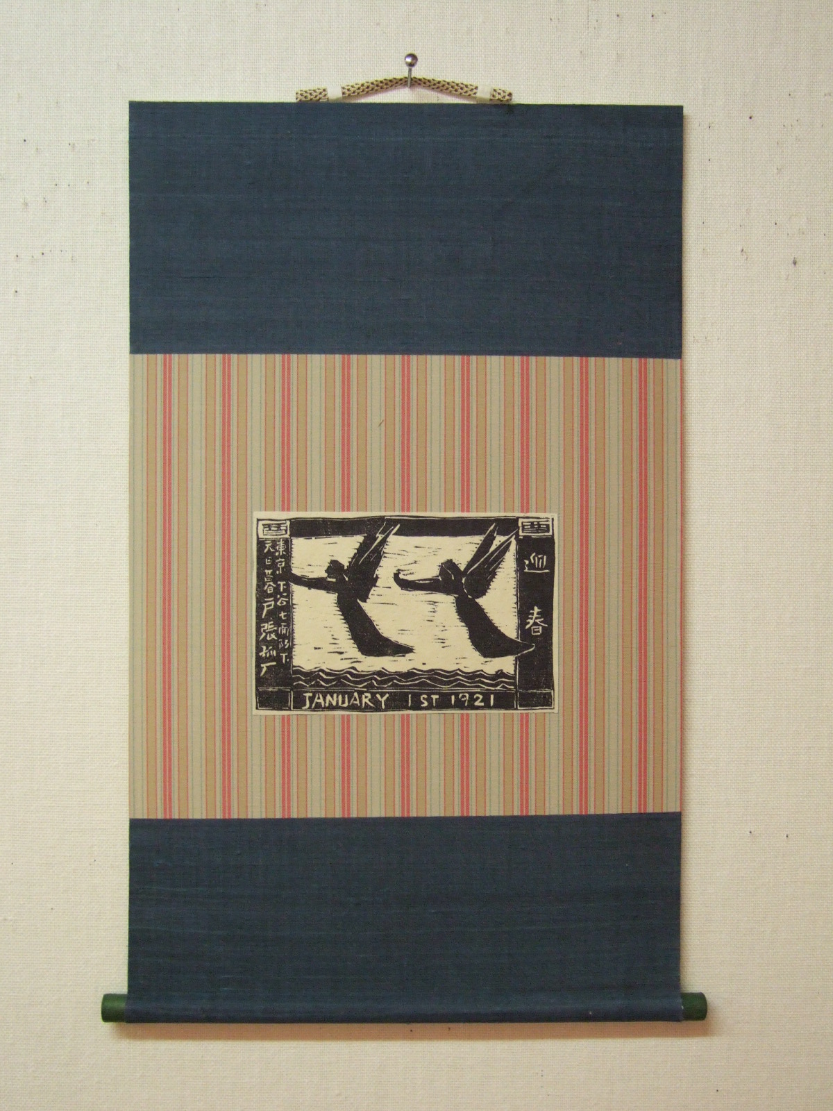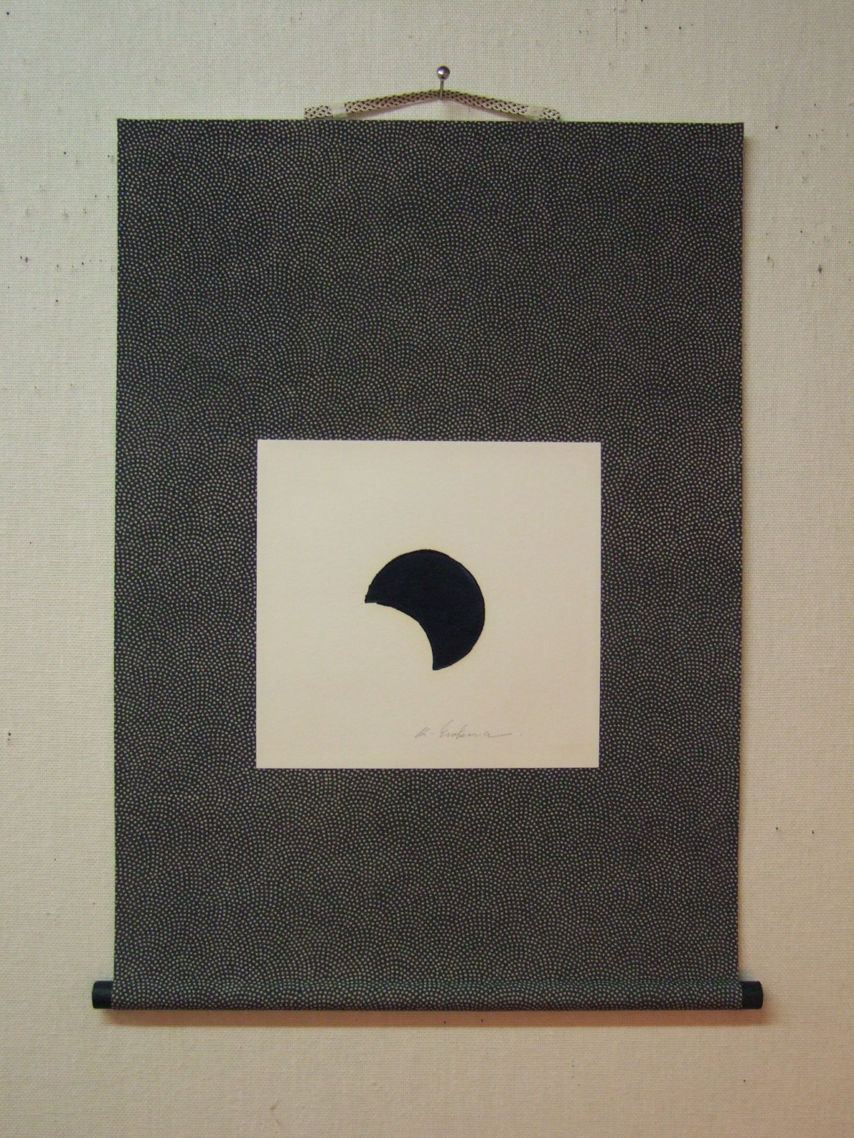 床の間のない現代住宅やマンションのフラットな壁にも飾れる縦35~40cmのミニ軸装仕立ての作品を考案しました。和風の楽しみをぜひ味わって欲しいとの願いからです。