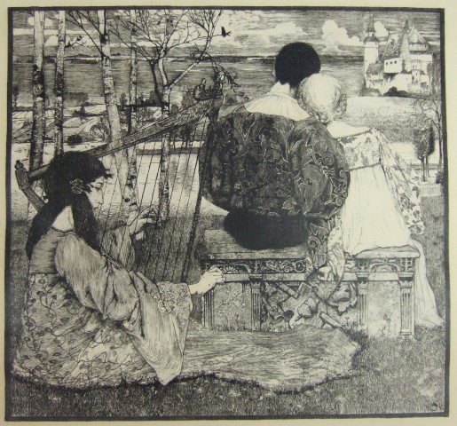 ヴォルプスヴェーデに仲間たちと芸術家村を開き、自然を舞台とした童話のような世界を装飾的に創造したフォーゲラーですが、その銅版画は1910(明治43)年に日本いち早く紹介され、文芸雑誌『白樺』に特集が組まれ、表紙や裏表紙、扉を飾りました。