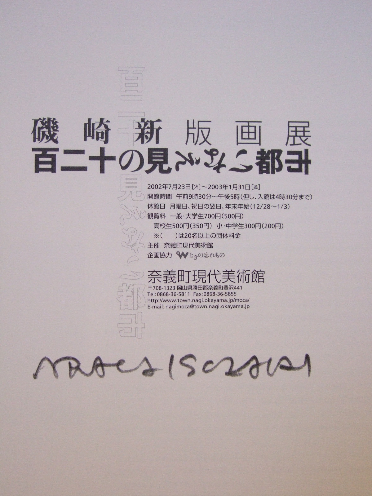 2002年7月23日~2003年1月23日まで岡山県奈義町の奈義町現代美術館で開催された磯崎新版画展のカタログ。