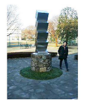 記念館の前におかれた彫刻は広井力さんの作品です。