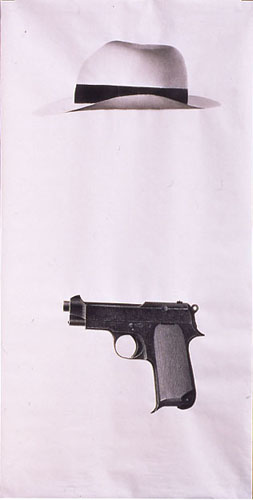 小野の断片シリーズは、帽子や、靴や、拳銃と言ったものがその形に切り取られて「断片」として描かれている。テンペラで描かれたそれらの絵はそれ自体きちっとした作品で日本画のような弱さはない。しかしながら、一つ一つではやはり何処か物足りないところがあるのも事実である。だが、それ故に購入者としては幾つか買うと組み合わせてみる楽しみが生まれるのである。ハイヒールを履いた美しい足と小型拳銃を組み合わせて「女スパイ」を思ったり、キザな帽子と大型拳銃はマフィアの男だったりする。また、ハイヒールとダンディーな靴を並べれば恋人同士の語らいを思い浮かべることが出来る。小野作品には、キャンバス作品にも何処か未完成な感じがあるが、この未完成さが日本絵画の伝統を継承する最大の特徴ではないかと思う。そして、断片シリーズには、最近の洋風建築においても新しい見立ての楽しみを蘇らせる良い意味での弱さがあるように思うのである。
