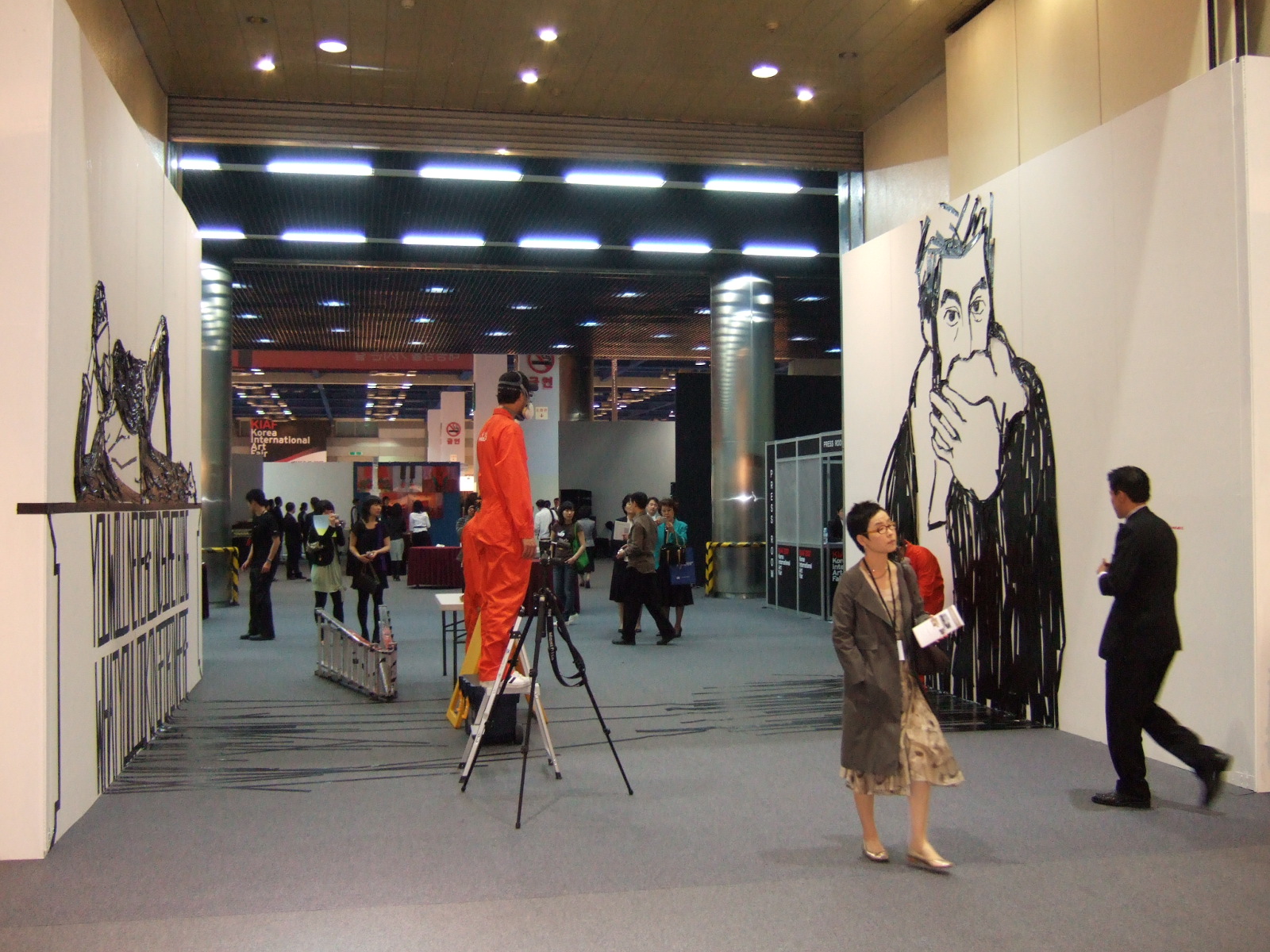 金浦空港に到着し、ホテルのチェックインを済ませ、KIAFの会場に移動。知っている韓国語は「アンニョンハセヨ」と「カムサンミダ」だけ。ハングル文字もさっぱりわからないが、日本語か英語のどちらかが通じるようだし、『地球の歩き方』が頼りになり迷わず会場に着いた。