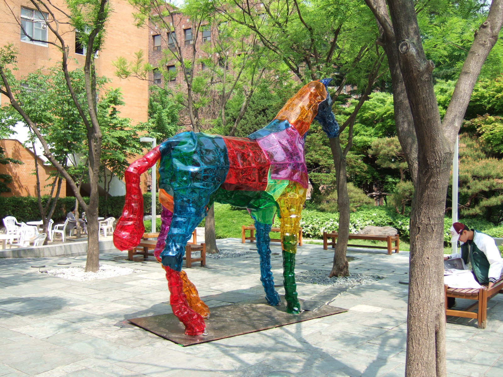 ようやくこの都市に慣れてきたのに、今日が最終日。帰る前にソウル市立美術館に寄った。野外では動物のカラフルなオブジェが展示されている「Art Safari」展をやっており、遠足中の園児に交じって見学。館内では、「新所蔵作品2006」展が催されており、KIAFにもあった作品も多く見られた。建物は古いらしいが中は改装されたらしく、明るくて、気持ちいい空間だった。