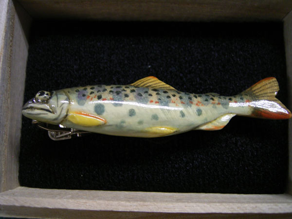 ◎sale渡部正彌 木彫ネクタイピン「アマゴ」箱書
