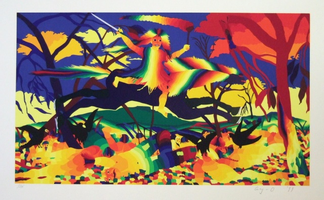 このルソーに捧げたオマージュもそのひとつです。いまは亡き名プリンター・岡部徳三さんによる29版からなる美しいプリントは、靉嘔の虹の世界をひときわ華やかに盛り上げています。