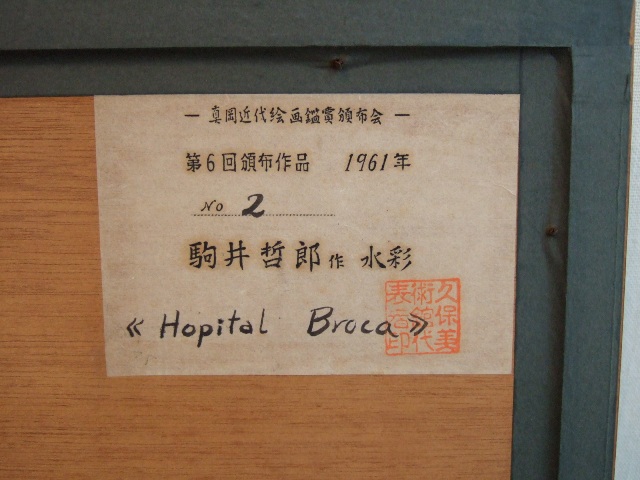 掲載した写真は、1961年に真岡で頒布された駒井哲郎作品の額の裏です。