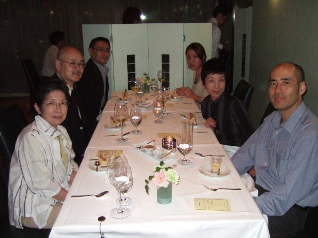 なかなか全員が揃った写真がなくて、随分と季節はずれの雰囲気ですね。それもそのはず、このレストラン、天井が開くんです。さやわかな外気が流れ、夜空を仰いでの会食でした。