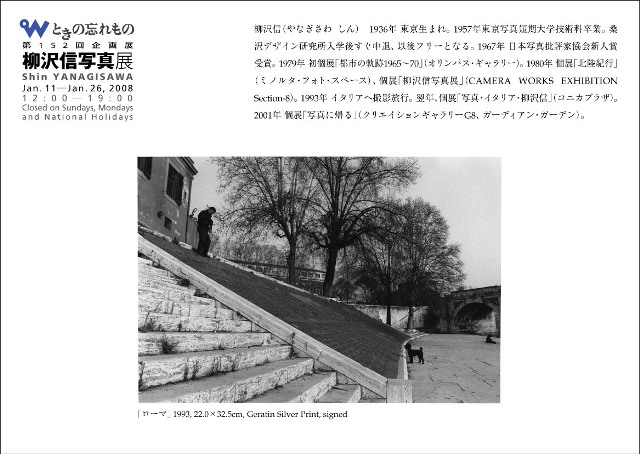 今回展示するのは、1993年にイタリア旅行をした際に撮影された作品で、初めて海外の町や人、空気を写し取り、今後の新しい展開が期待されるものでした。しかし、直後の喉頭癌と食道癌の手術によって、シャッターを切ることができなくなり、現時点では柳沢信の最後の連作となっています。