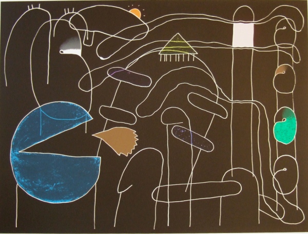 私が元永定正先生に初めて版画をつくっていただいたのは、1977年ですがそのときのエディション3点のタイトルは「白い光が出ているみたい」「オレンジの中で」「いいろろ」でした。