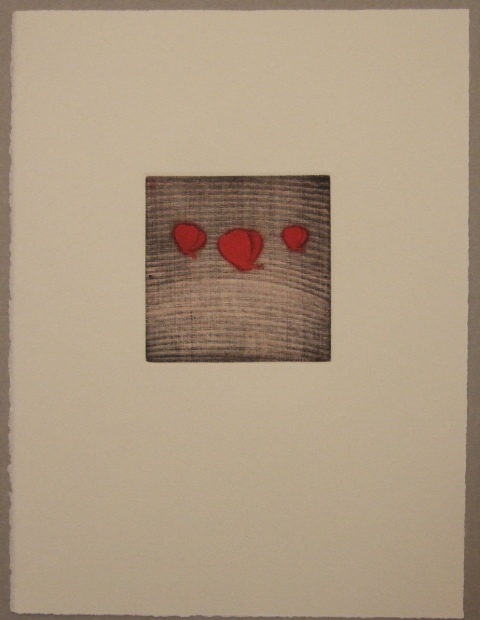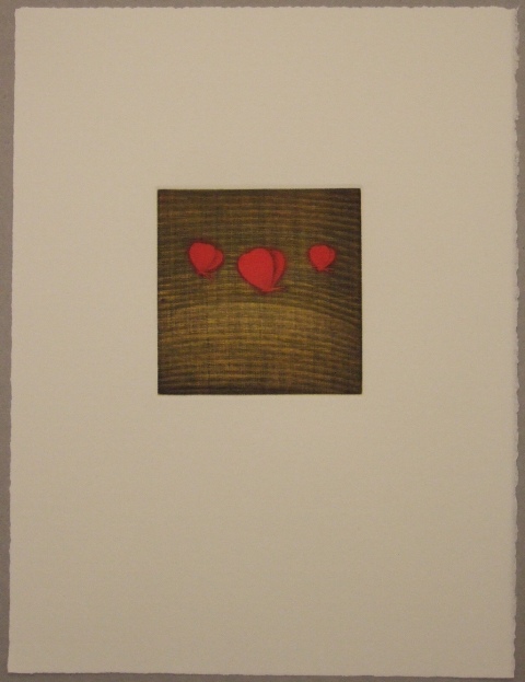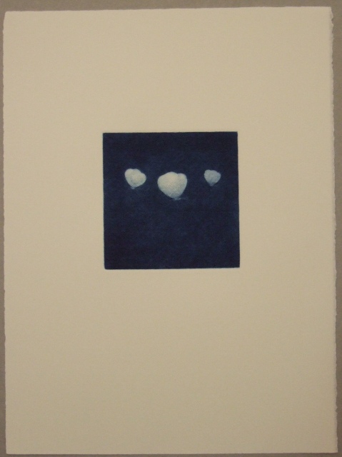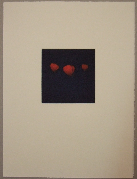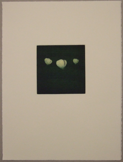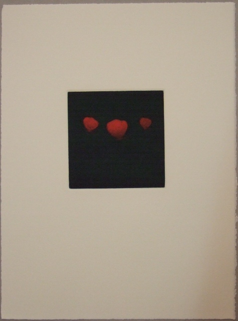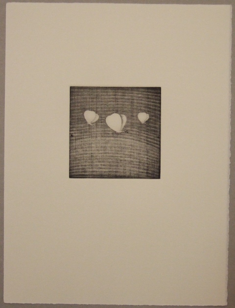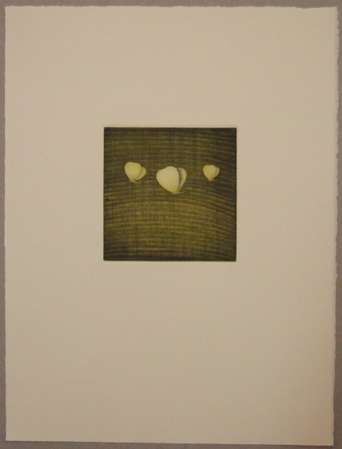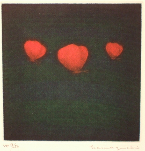 ◆1980年代にパリからアメリカ西海岸に移った浜口陽三は、新たに契約したヴォーバル画廊が版元となり、このような別刷りを加えた作品が発表されるようになりました。