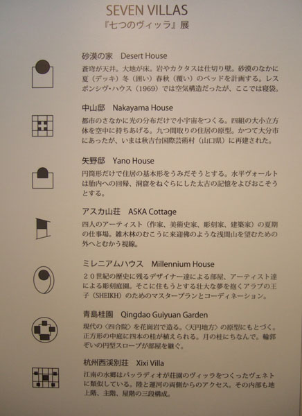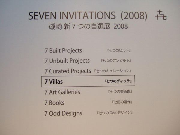 「磯崎新 7つの自選展2008 第1回 “7つのヴィッラ”」展。最後にたどり着いた小部屋の展示室には、グローバルな磯崎新先生がどのように動き回り、誰と交友があり、なにを好んでいるかなど・・・気楽に見られるものが展示されており、ひとりで真剣に見ていた。子供のころの写真まであるのだから、これは滅多に見られるものではないはずだ。