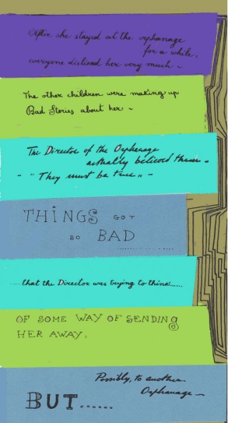 ヴァンニさんのイラストは、雄弁に物語を語る。ページにあけられた窓(穴)の奥にポツンと立っている女の子。白と黒で描かれた大勢の子どもが遊ぶ孤児院の風景では、女の子のいるところだけがオレンジ色に切り抜かれている。女の子の運命が坂道を転げ落ちるように暗転していく場面では、ページが細く切り刻まれ、不安を募らせながらページをめくる読者の手も自然と速くなる。そんなヴァンニさんのイラストのテクニックに、わたしは完璧にノックアウトされてしまったのだ。
