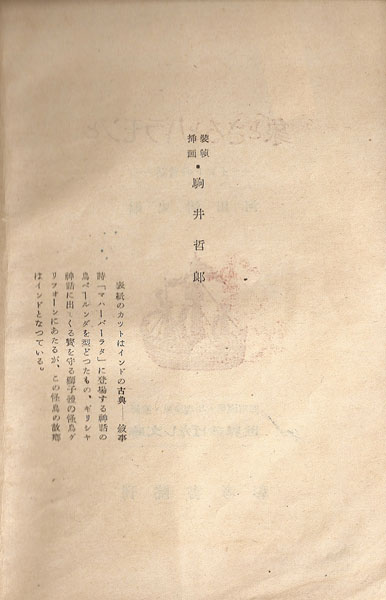 次に、この絵柄から考え、何かの挿絵に使われた、または挿絵のために制作されたものなのではと推定し、今まで調査から漏れている本(駒井先生が挿画を担当された)に狙いをしぼりました。