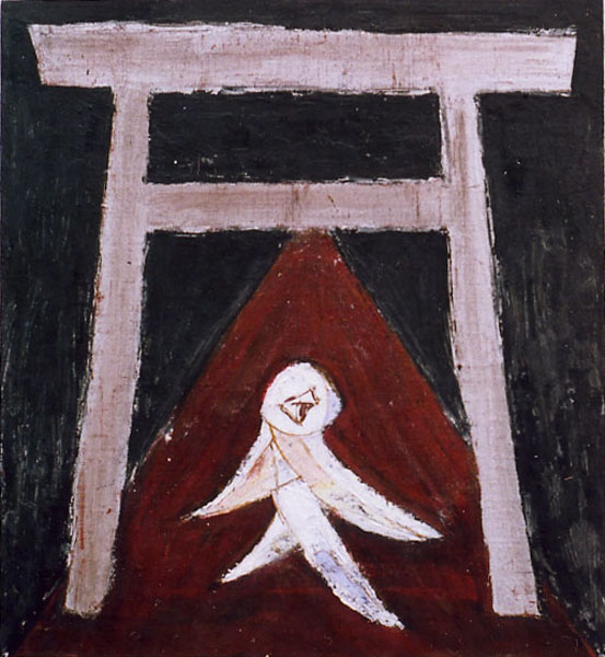 私が絵にしたものは、スーパーカブ(カブおじさん)、D51(雨降り機関車)、旗日の交通機関の国旗(にっぽんこうもり)、鳥居(夜詣でる)、です。これから自分の絵がどう展開していくのかはわかりませんが、意識しすぎないで、肩の力を抜いて「気がついたら日本を描いてた」になったらいいなと思っています。油彩(洋画)ですけどね。和魂洋才ということで…。 三須研一