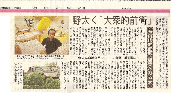 朝日新聞200807237月23日の朝日新聞に世田谷美術館で8月17日[日]まで開催されている「建築がみる夢 石山修武と12の物語」が大きく紹介されています。