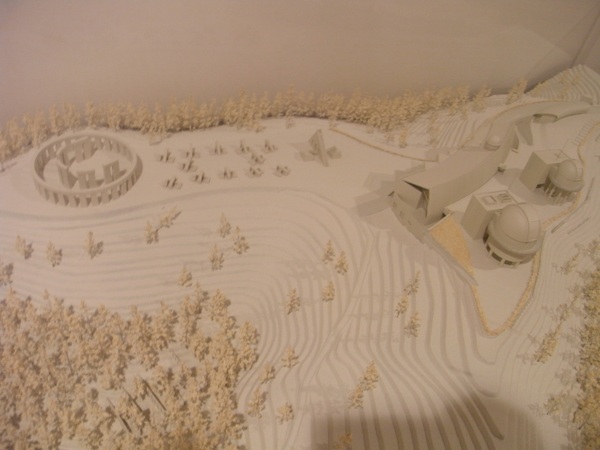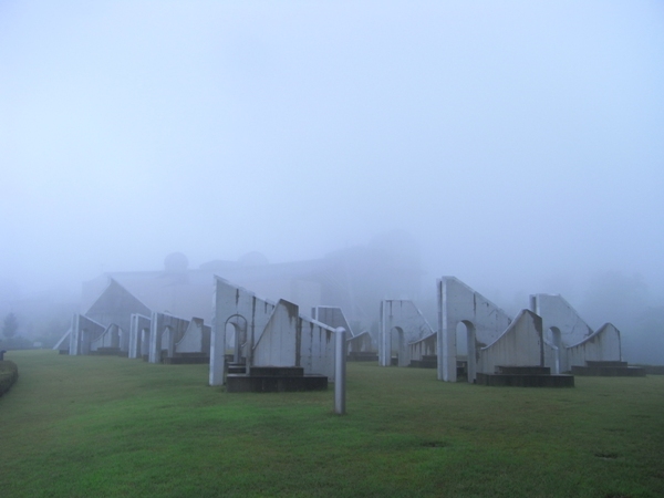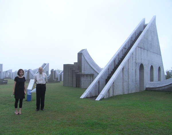野外のモニュメントと天文台が幻想的な雰囲気を醸し出しています。
