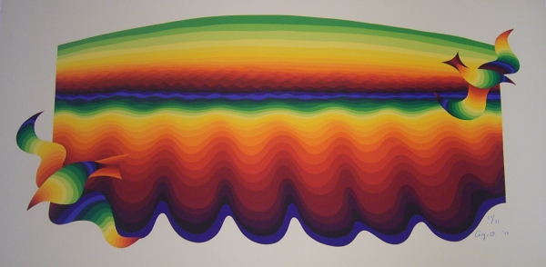 これらの靉嘔の大判の版画作品はいずれも、私がエディションしたものですが、その制作の経緯についてはコチラを読んでいただくとして、鮮やかな虹のグラデーションは30年経っても古びない。自画自賛ですが、現代版画の名作と思います。