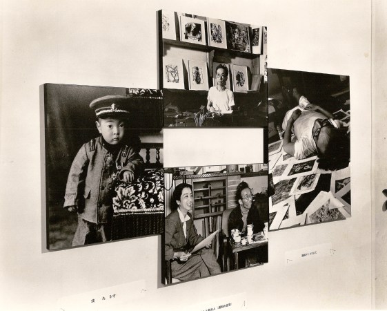 瑛九5歳の肖像写真から、浦和のアトリエでの瑛九夫妻の姿などがパネル展示。