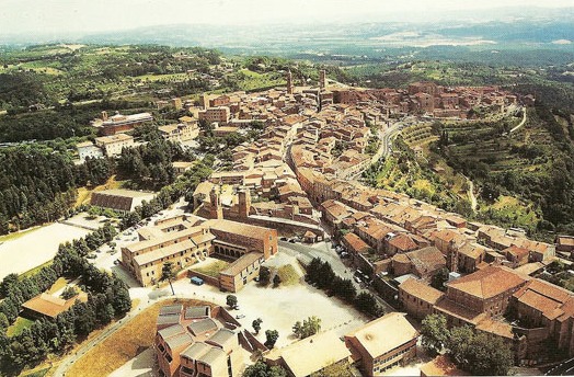 画家の戻っていった街。11世紀の街並みをそのまま残すペルジーノの生まれ故郷。街のはずれ(右の写真の下方)にはマリオ・ボッタ設計の高等学校があり、中世と現代が静かに調和している。