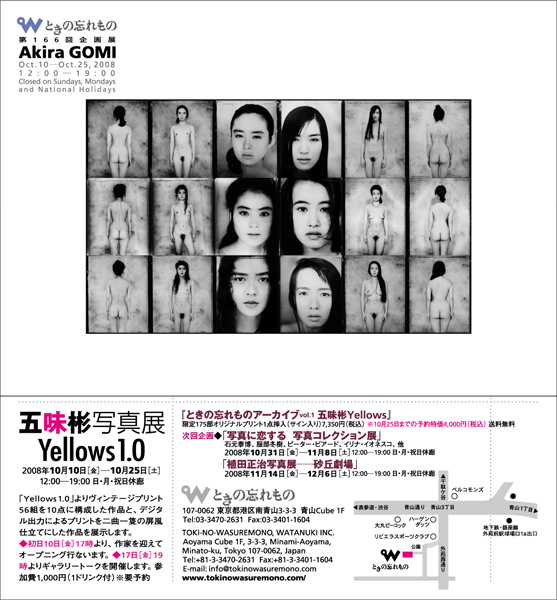 2008年7月にキャノンギャラリーで開催した個展「Yellows Return To Classic」(Yellowsの作品を古典的技法であるプラチナプリント、P.O.P.プリントによってプリントした作品)に出品する作品を制作する過程で作られたトライアルプリントを挿入します。