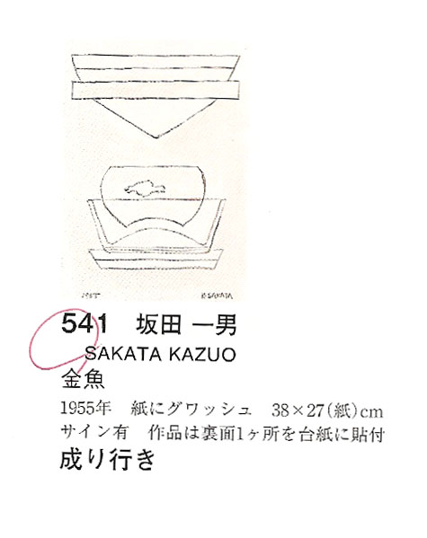 若くて美しい担当者はもちろんサカタカズオなんて知らない。知っていたら成り行きなんかで出すはずがない。その他有象無象の出品作の中の小品、たかが成り行きじゃあないかと思ったかどうか。