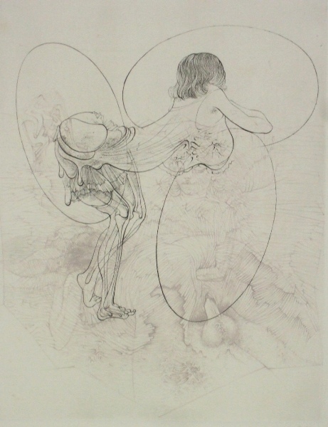 ハンス・ベルメールはご存知のように、自身で制作した球体関節人形と、それを撮影した写真作品で知られており、球体関節人形を作っている日本の作家に計り知れない影響を今なお与え続けています。ベルメールはまた、多くの版画作品も制作し、その独特な描線とモチーフは熱烈なファンを生んでいます。特に版画集『道徳小論』は、その代表作として高く評価されており、ダブルイメージを使った作品は、シュルレアリスムとエロティシズムが融合した傑作です。
