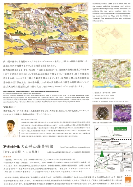 昨日は、筆者(三浦)の誕生日だからということではなかったのですが、お休みをいただき、日帰りで京都へ行ってまいりました。目的は、アサヒビール大山崎山荘美術館で開催されている「山口晃展」を見るためです。山口さんの作品は、デビュー当時から見ていて好きだったものですから、わざわざ出かけて行ったわけです。