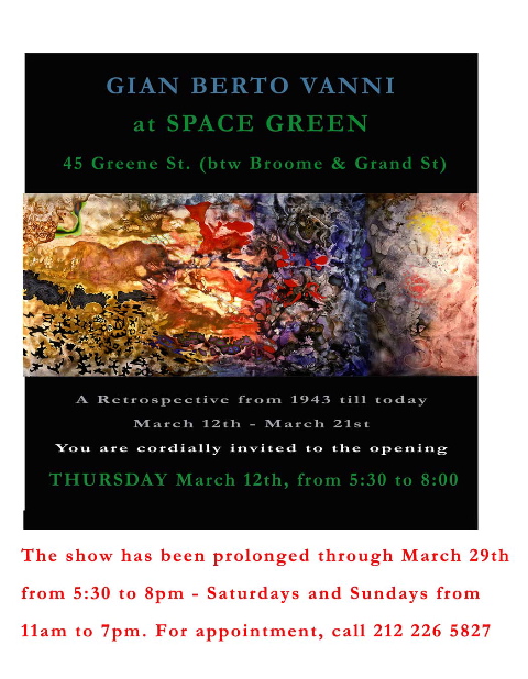 1940年代のドローイングで始まるこの展覧会は、1953年以降今日までの約100点のペインティングが展示されており、ヴァンニさんが今までに住んだいくつかの国での活動を辿るようになっているそうです。中には、初公開の大作なども展示されていて話題になり、当初21日までの会期が29日まで延長されました。今月ニューヨークにいらっしゃる予定のある方は、どうぞお立ち寄りください。会場:SPACE GREEN
