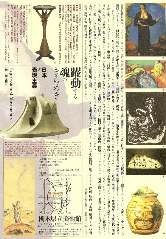 20世紀初頭にカンディンスキーやマルクらによって始まったドイツ表現主義運動が、日本の美術・工芸だけでなく、建築や舞台芸術から生活領域にまでに与えた影響を検証しようとする展覧会で、洋画、版画、日本画、彫刻、工芸、建築、写真、舞台美術、映画資料など約350点を展示します。