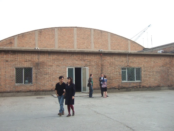草場地は、大山子のあとで新たなギャラリー街としていま知られつつあるところです。見に行って何に驚いたかというと、ギャラリーの広さです。元は工場や倉庫だったので、天井は高いし広いし。あるギャラリーにぞろぞろと入ったものの、まるで体育館のようなそこでは、作家らしき人物がテレビのインタビューを受けているだけで、作品らしきものは何もありません。皆、なんだ何もないのかと、またぞろぞろと出てきて、隣の建物(同じギャラリー)を見ていると、さっきのところに作品があったんだよということで、またしても、ぞろぞろと行ってみると、相変わらず何もない。あそこのあれだよと言われて建物の上のほうにある窓に目をやると、そこに「WORLD WISE」という文字が。それだけです。別にそれが床に映っているというほどきれいな影にはなっていません。で、画廊の人がスイッチを入れるとモーターが動いて、字が変わるという仕掛け。もちろん、「WORLD WIDE」をもじった言葉ですが、「で???」という感じでまた皆ぞろぞろ。しかし、あれだけ広いとスタッフの使うスペースも広々としたもので、それだけは羨ましく見てきました。また、中国では若い作家をよくテレビで紹介するそうで、それも日本でぜひ真似て欲しいことです。