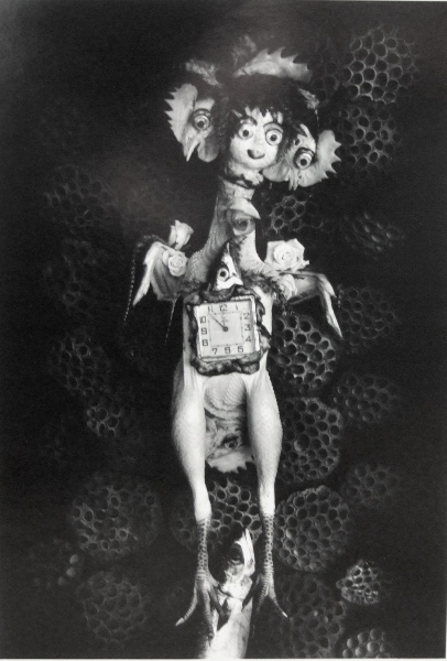 1990年、NHK趣味百科という番組で「近未来写真術」というシリーズが放送されました。12名の写真家を毎週一人ずつ紹介するという内容で、その第1回目が今道子さんでした。今さんの作品を初めて見たときの驚きは今でも覚えています。テカテカした魚でできた帽子、タコの吸盤で覆われたメロンなど、それは強烈な印象でした。「歯ざわり、手ざわり、耳ざわり、目ざわりに肌ざわりと人体の感覚すべてを使って私は表現したいと思いますし、感じていただきたい。」と今さんはおっしゃっていますが、まさに写真からは視覚だけではない何か別の感覚が刺激されます。当時は、「カラーの温度、暖かさが嫌い」だったそうですけれど、1994年頃からはカラーでも制作し始め、2001年以降はカラーが主体になったようです。最近の作品を拝見する機会が無く残念です。