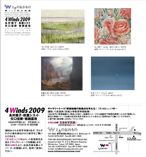 ◆ 4 Winds 2009展 永井桃子・秋葉シスイ・矢口佳那・猪瀬直哉会期=2009年7月3日[金]―7月25日[土]