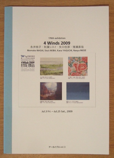 いま開催中の「4 Winds 2009展」のカタログとして、vol.3を制作いたしました。こちらには、全出品作品のほか、各作家のコメントを掲載、特に猪瀬直哉さんのページには、作品のためのテキストも掲載しています。