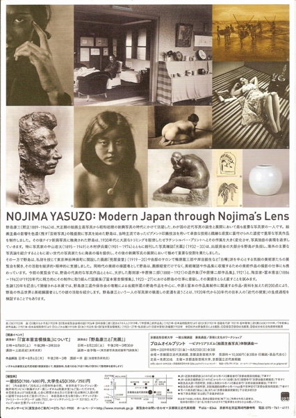 ART OSAKAに向かう途中、京都に立ち寄って、京都国立近代美術館の「野島康三 ある写真家が見た日本近代」展を見ました。23日で終わってしまったので、事後報告になってしまいますが、今年生誕120年を迎える写真家・野島康三は、大正期の絵画主義写真(ピクトリアリズム)