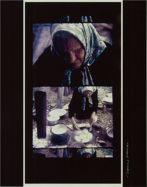 今日「ジョナス・メカス新作写真展」からご紹介する作品は、18日にときの忘れもので上映会をいたします映像作品「リトアニアへの旅の追憶」から、「料理をする私の母、1971」です。メカスさんのお母さんが、息子のためにジャガイモを使った料理を作っている場面です。