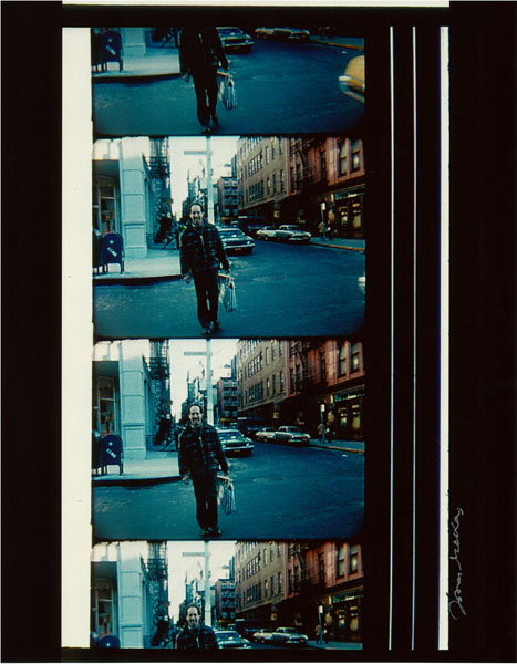 ジョナス・メカス「ロバート・フランク、プリンス・ストリートとウェスト・ブロードウェイの交差点、ソーホー、ニューヨーク、1973(時を数えて..)」