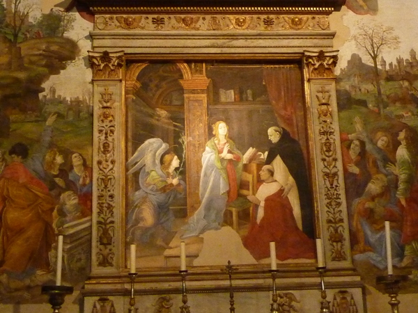 教会は、午前中開けた後、午後は16時ごろまで閉めているところが多いので、いらっしゃる方はお気をつけ下さい。そのようなことで、ずっと開いているパンテオンでラファエロのお墓参りをした後、近くのサンタ・マリア・ソプラ・ミネルヴァ教会でフィリッポ・リッピの「受胎告知」を見てつないだのですがまだ16時まで30分ほどあったので、サンタ・ゴスティーノ教会の階段に座って開くのを待ちました。すると、観光客ではなさそうな、かといって信者という風でもない人たちも集まってきました。16時になり門が開くと、入り口に集まって列が出来たのでそれにならんだのですが、どうも様子が変だと列の先を見ると神父さんに何かもらっています。視線を教会内に移すと観光客は中を見て回っています。どうも何か施しを受ける人の列だったようで、あわてて列から離れました。向こうもこちらを変だと思っていたことでしょう。