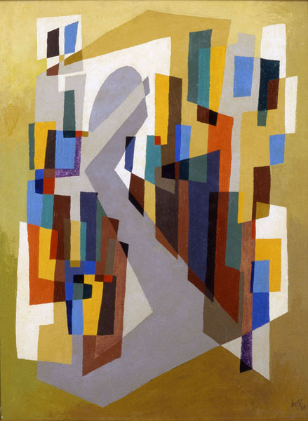 ドメニコ・ベッリの作品のご紹介、今日は「LA NEDINA」です。抽象画のようですが、中央に通る道の両側の建物を色面で表現し、流れる景色をストップモーションで止めたように見えます。