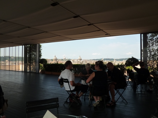 次は、ヴェネチア広場ヴィットリオ・エマヌエーレ2世記念堂裏にある、カピトリーナ絵画館で、カラヴァッジョの「洗礼者ヨハネ」「女占い師」などを見ました。ここのテラスでランチを食べたのですが、眺めが良く、ひじょうに気持ちの良い場所でお薦めです。