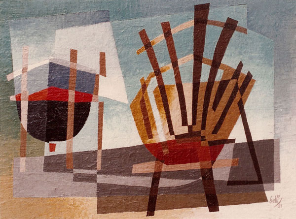 今日ご紹介するドメニコ・ベッリの作品は「造船所」という作品です。ベッリの色面の使い方は実にうまくて、そこを何にでも思わせてしまう効果があります。この作品でも、シンプルな形で船を建造しているところを表現し、ベースの色面がそこを造船所にしてしまっています。