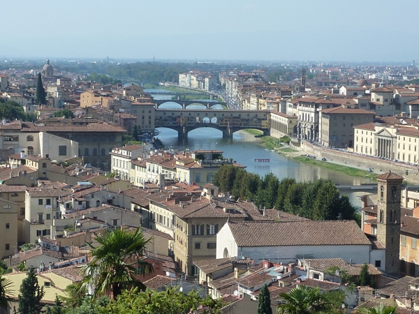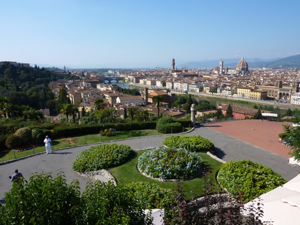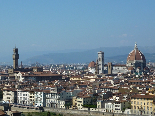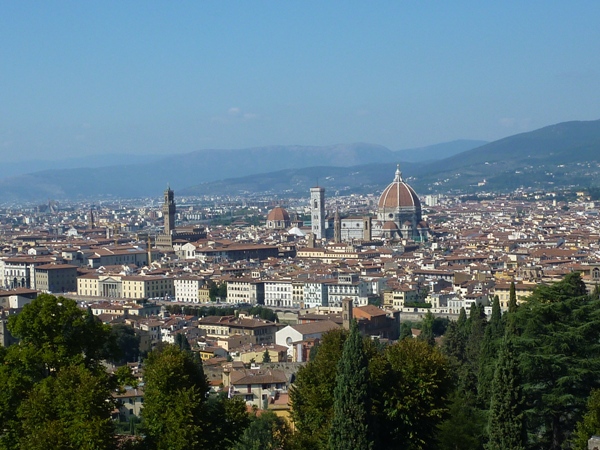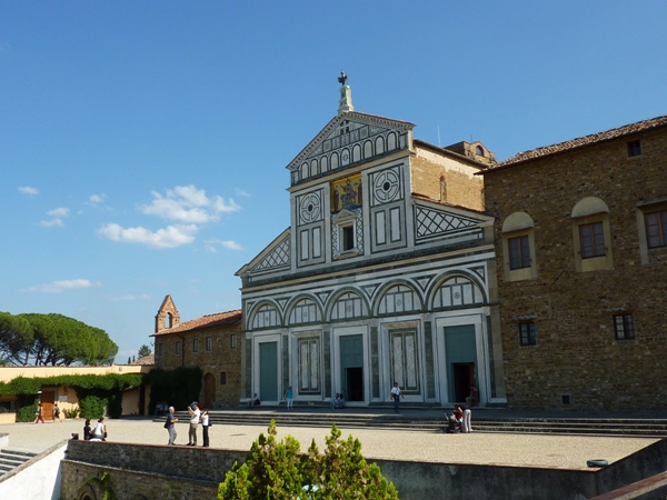 フィレンツェに行ったら必ず行くべきところのひとつが、ミケランジェロ広場です。ここからはフィレンツェの町並みが一望できるので、人気の観光スポットになっています。しかし、実はこの少し上に、サン・ミニアート・アル・モンテ教会があって、ここからの眺めも素晴らしいものがあります。こちらに先に行って、それからミケランジェロ広場に下りていくのがお薦めです。