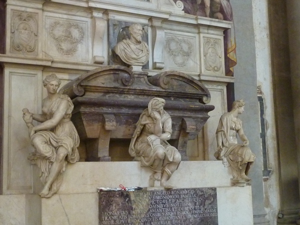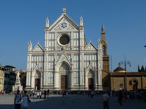 いつも時間切れで入り逃していたサンタ・クローチェ教会に、今回ようやく入りました。ところが内部は大改修中。140x40mの広い教会内には、ミケランジェロやガリレイ、ロッシーニのお墓があります。