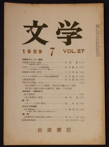●そして、『文学 1959年7月 第27号』(岩波書店/¥4,800円)では、本書に未収録となる建築論「伝統論の系譜と哲学」を掲載しています。八田利也の幅広い執筆活動の一端を伺い知ることが出来る一冊です。