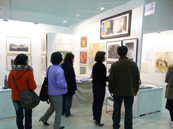 テグ・アートフェアも三日目の朝を迎えました。初日の最初の入場者は高校生の一団で、二日目、三日目の最初の入場者は、幼稚園の子供達でした。ちょっと戸惑ってしまいましたが、日本ではアートフェアを子供達に見学させるなんて考えられませんから、少し羨ましい気もします。