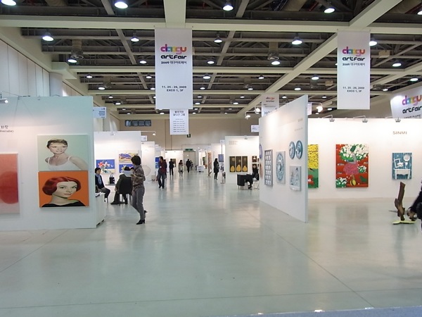 テグ市にはソウルに次ぐ約50の画廊があり、そのうち今回27画廊が出展しています。街では街灯に広告のバナーが取付けられていますし、ローカルテレビではコマーシャルもやっているそうで、このアートフェアを盛り上げようとする意気込みが感じられます。コレクターも多いと聞いていますので、週末には大いに期待しています。