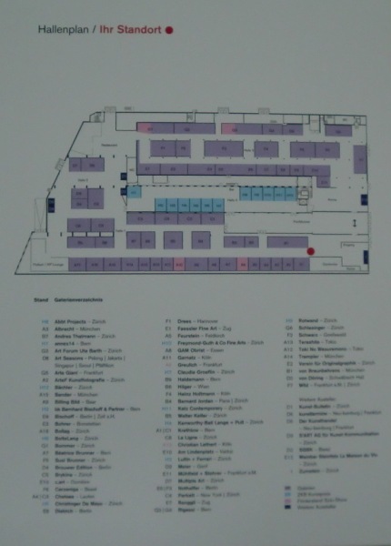 ちょっと会場内を探検。AからHまで区分けされたエリアは通路が入り組んでいるので迷うと出られなくなりそうです。チューリッヒ、ベルン、ミュンヘンなど近隣都市からの出展が多いですね。絵画・写真・オブジェ、すべてのギャラリーに特徴があり何回も見たくなります。