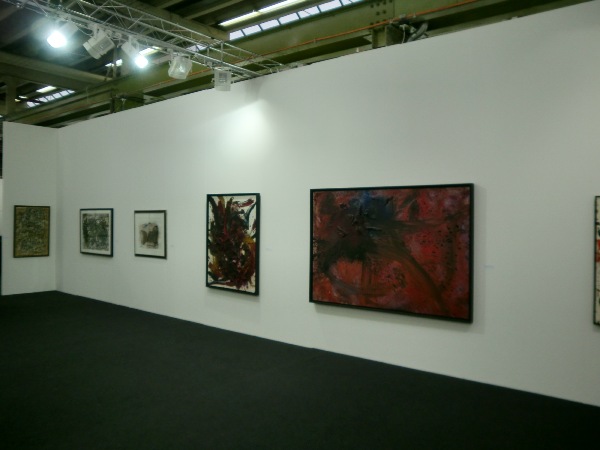 右)ブースF3のベルリンのGalerie George Nothelferはいかにも大画廊の風格。白髪一雄や、ヤン・ホスを展示。ヤン・ホスさんは向うから話しかけてきて南画廊の志水さんを懐かしがっていました。