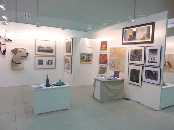 会場のEXCOという建物はガラス張りのかなり大きな建物で、中も空間が広く、いかにも見本市会場といった風情です。日本の画廊は一角にまとまっていて、通訳の子が対応しやすくなっていました。